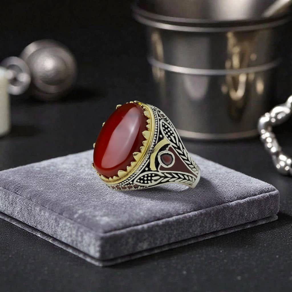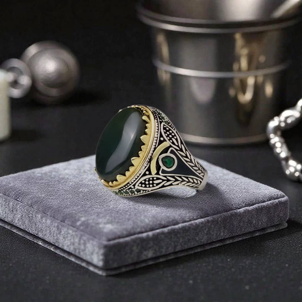 925 sterling silver and natural agate, number 1 فضة عيار 925 والعقيق طبيعي رقم ١